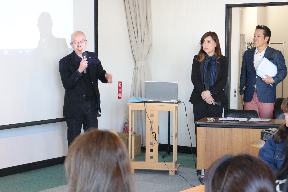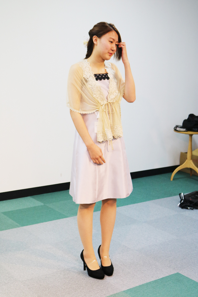 今回は国内フォーマルウェア―のトップ群企業であるラブリークィーン株式会社様より、コーディネーターの脇田様、シニアマネージャーの古田様をお招きし、商品企画からスタイリングの組み方、また大切なカバーアイテムであるストール、コサージュに関して実演を交えながら講義していただきました。