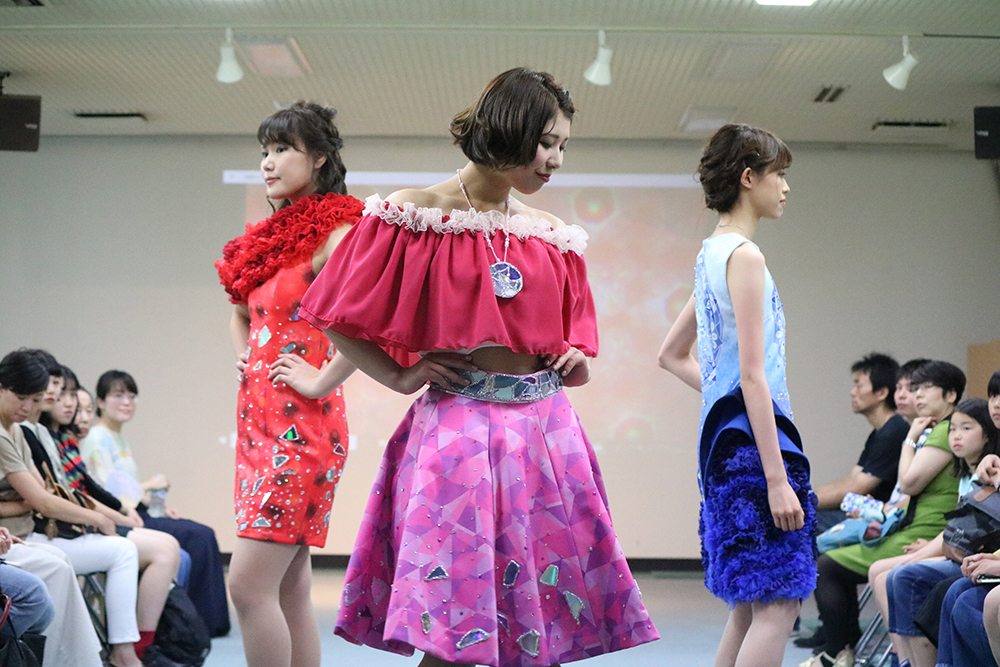 各科の作品展示、デザインビジネス科の各種ワークショップ、ファッションスタイリングコースの模擬店舗、ファッションクリエーターコースのファッションショー、長野プロデュース科のフードコート、ビューティークリエイターTAKAKO氏の講演&ワークショップと、多彩なイベントで盛り上がりました。